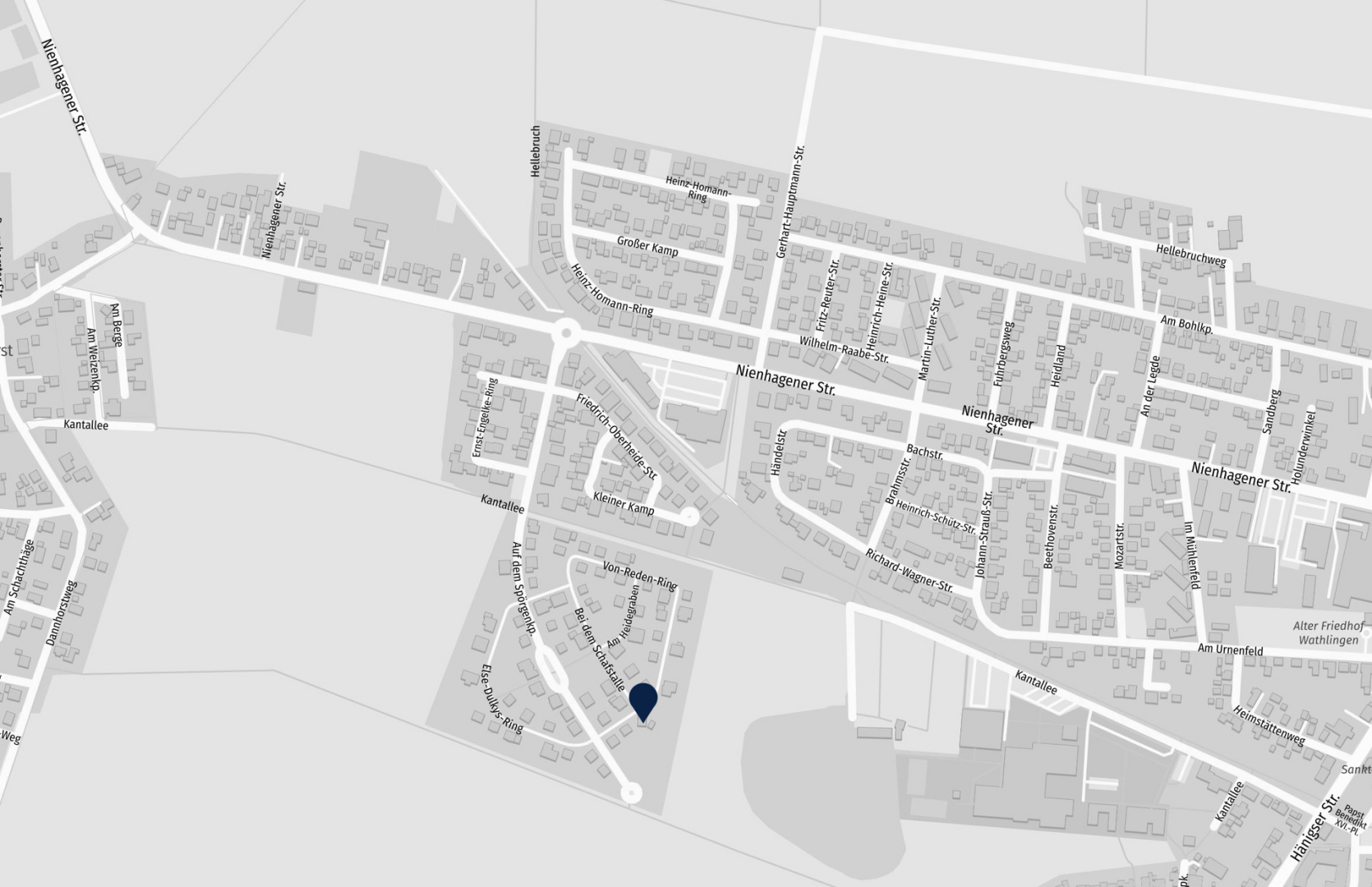 Der Bungalow befindet sich in unverbaubarer Feldrandlage, in einem Neubaugebiet in Wathlingen, einer gefragten Wohnadresse in der Samtgemeinde im Landkreis Celle. Die Lage zeichnet sich durch eine harmonische Verbindung von ruhigem Wohnumfeld, naturnaher Umgebung und ausgezeichneter Verkehrsanbindung aus.