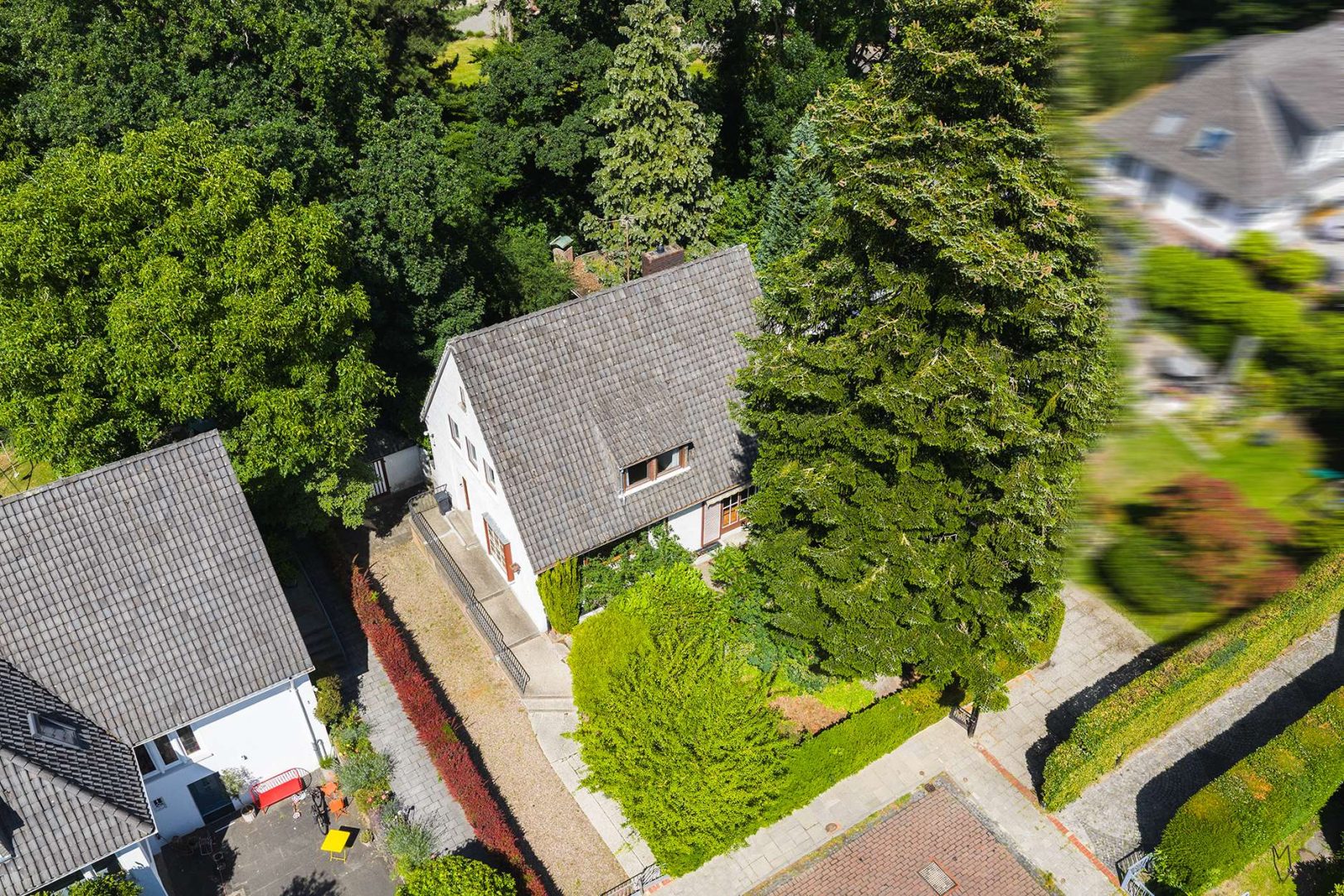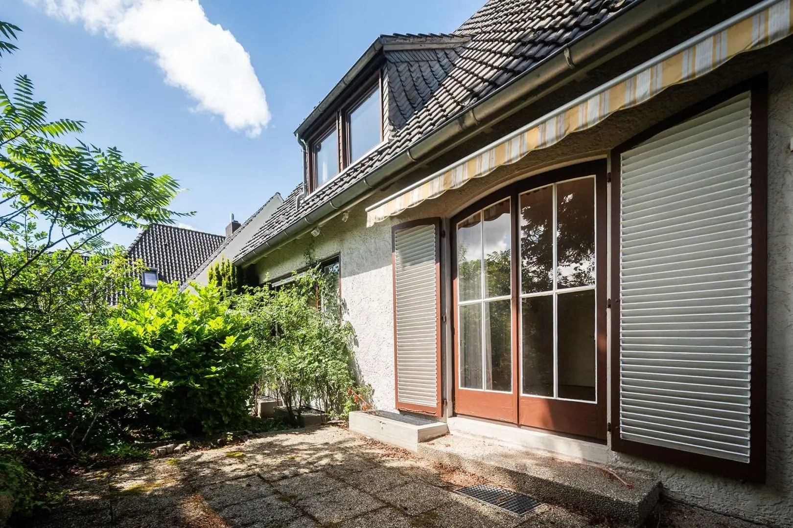Das grüne Umfeld schafft eine angenehme Wohnatmosphäre: Der Gartenbereich erstreckt sich sowohl vor als auch hinter dem Haus und lädt zu vielfältigen Gestaltungsoptionen ein – vom Rückzugsort im Grünen bis zum Spielbereich für Kinder oder einer repräsentativen Außenanlage. Eine Garage bietet zusätzlichen Komfort und Stauraum.